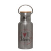 I Love you Mom pink, Μεταλλικό παγούρι θερμός (Stainless steel) Ασημένιο με ξύλινο καπακι (bamboo), διπλού τοιχώματος, 350ml