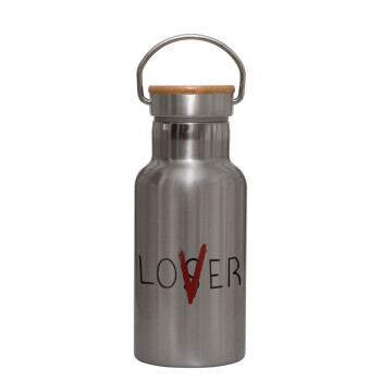 IT Lov(s)er, Μεταλλικό παγούρι θερμός (Stainless steel) Ασημένιο με ξύλινο καπακι (bamboo), διπλού τοιχώματος, 350ml
