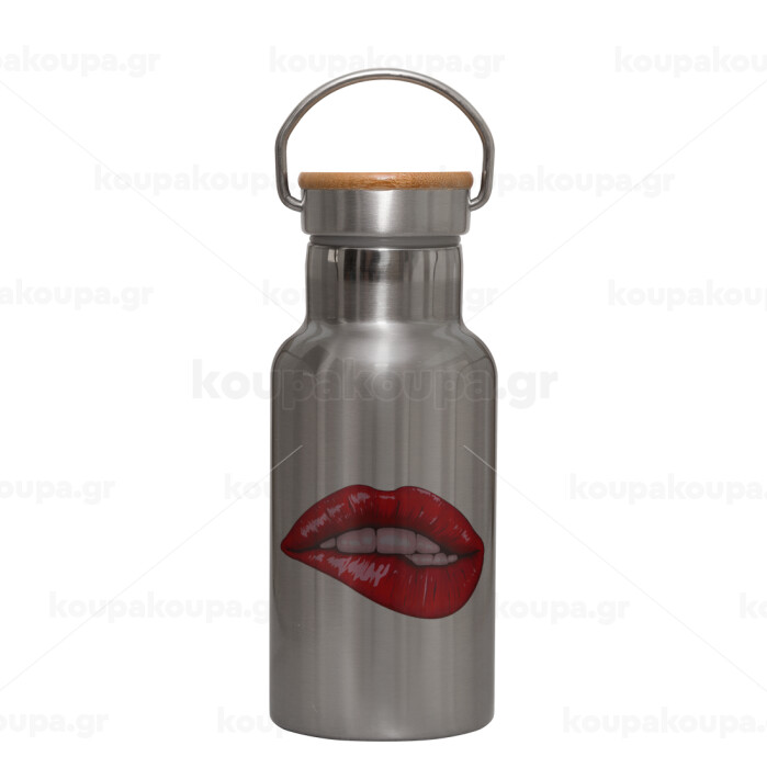 Lips, Μεταλλικό παγούρι θερμός (Stainless steel) Ασημένιο με ξύλινο καπακι (bamboo), διπλού τοιχώματος, 350ml