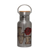 Love lights and roses, Μεταλλικό παγούρι θερμός (Stainless steel) Ασημένιο με ξύλινο καπακι (bamboo), διπλού τοιχώματος, 350ml