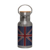 Σημαία Αγγλίας UK, Μεταλλικό παγούρι θερμός (Stainless steel) Ασημένιο με ξύλινο καπακι (bamboo), διπλού τοιχώματος, 350ml