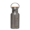 Κύκνος με στέμα, Μεταλλικό παγούρι θερμός (Stainless steel) Ασημένιο με ξύλινο καπακι (bamboo), διπλού τοιχώματος, 350ml