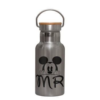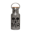 Mikey Mr, Μεταλλικό παγούρι θερμός (Stainless steel) Ασημένιο με ξύλινο καπακι (bamboo), διπλού τοιχώματος, 350ml