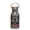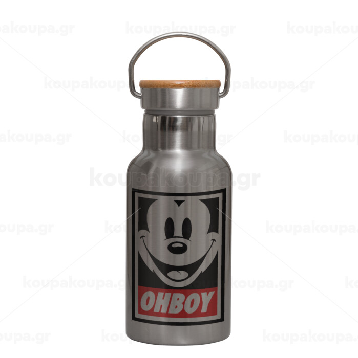 Oh boy μίκυ, Μεταλλικό παγούρι θερμός (Stainless steel) Ασημένιο με ξύλινο καπακι (bamboo), διπλού τοιχώματος, 350ml