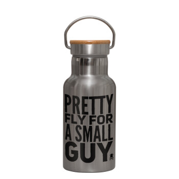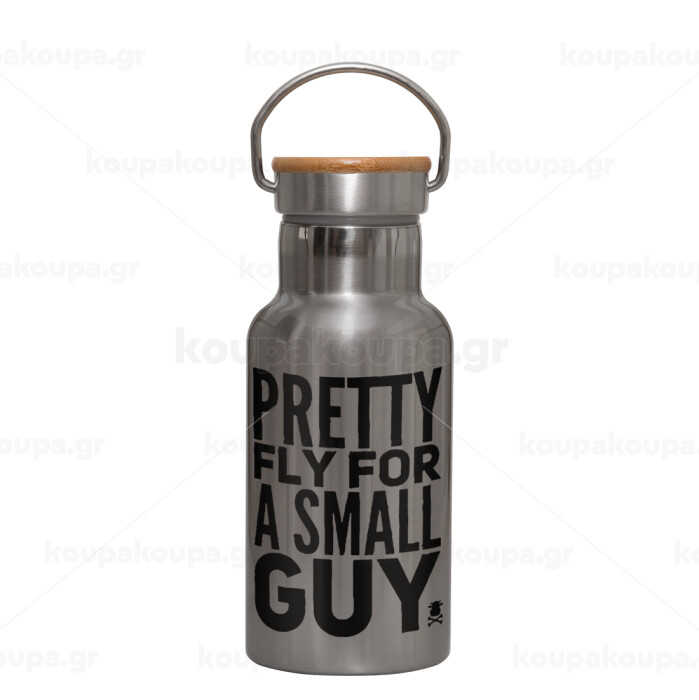 Pretty fly for a small guy, Μεταλλικό παγούρι θερμός (Stainless steel) Ασημένιο με ξύλινο καπακι (bamboo), διπλού τοιχώματος, 350ml