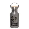 8bit Game Over Couple Wedding, Μεταλλικό παγούρι θερμός (Stainless steel) Ασημένιο με ξύλινο καπακι (bamboo), διπλού τοιχώματος, 350ml