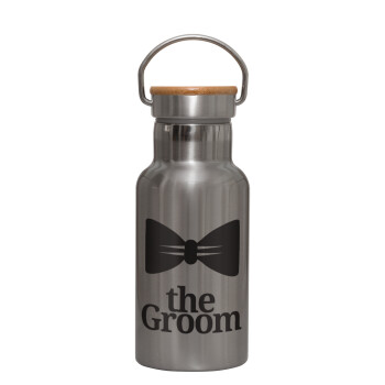 The Groom, Μεταλλικό παγούρι θερμός (Stainless steel) Ασημένιο με ξύλινο καπακι (bamboo), διπλού τοιχώματος, 350ml