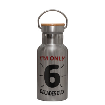 I'm only NUMBER decades OLD, Μεταλλικό παγούρι θερμός (Stainless steel) Ασημένιο με ξύλινο καπακι (bamboo), διπλού τοιχώματος, 350ml