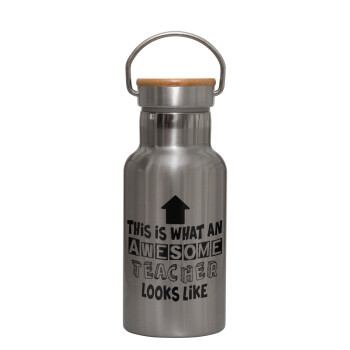 This is what an awesome teacher looks like!!! , Μεταλλικό παγούρι θερμός (Stainless steel) Ασημένιο με ξύλινο καπακι (bamboo), διπλού τοιχώματος, 350ml