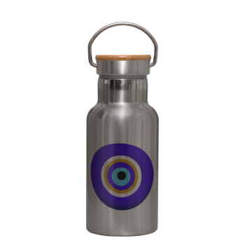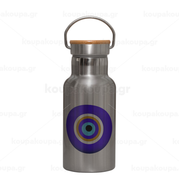 Το μάτι, Μεταλλικό παγούρι θερμός (Stainless steel) Ασημένιο με ξύλινο καπακι (bamboo), διπλού τοιχώματος, 350ml