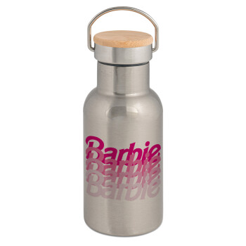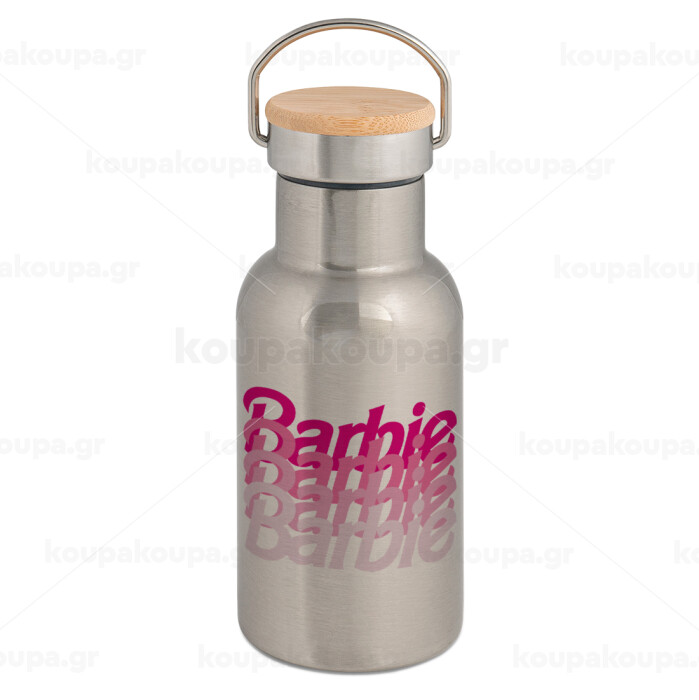 Barbie repeat, Μεταλλικό παγούρι θερμός (Stainless steel) Ασημένιο με ξύλινο καπακι (bamboo), διπλού τοιχώματος, 350ml
