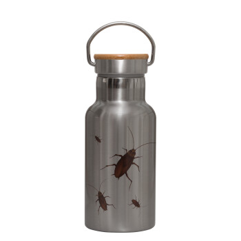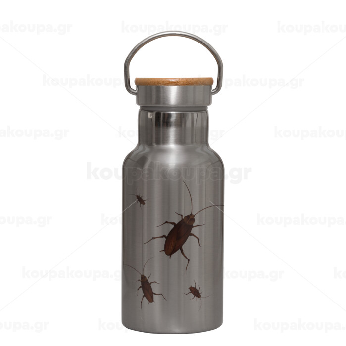 Κατσαρίδα, Μεταλλικό παγούρι θερμός (Stainless steel) Ασημένιο με ξύλινο καπακι (bamboo), διπλού τοιχώματος, 350ml