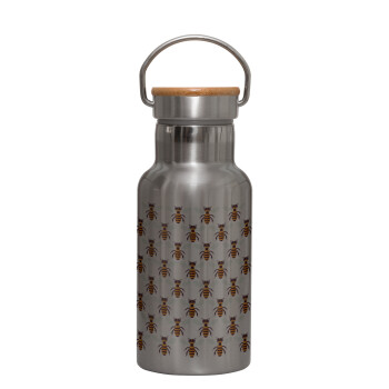 Μελισσούλες, Μεταλλικό παγούρι θερμός (Stainless steel) Ασημένιο με ξύλινο καπακι (bamboo), διπλού τοιχώματος, 350ml