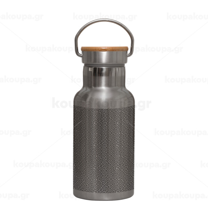 Doodle Maze, Μεταλλικό παγούρι θερμός (Stainless steel) Ασημένιο με ξύλινο καπακι (bamboo), διπλού τοιχώματος, 350ml
