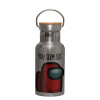 Among US, you seem sus, Μεταλλικό παγούρι θερμός (Stainless steel) Ασημένιο με ξύλινο καπακι (bamboo), διπλού τοιχώματος, 350ml
