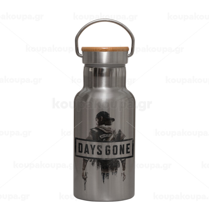 Day's Gone, Μεταλλικό παγούρι θερμός (Stainless steel) Ασημένιο με ξύλινο καπακι (bamboo), διπλού τοιχώματος, 350ml