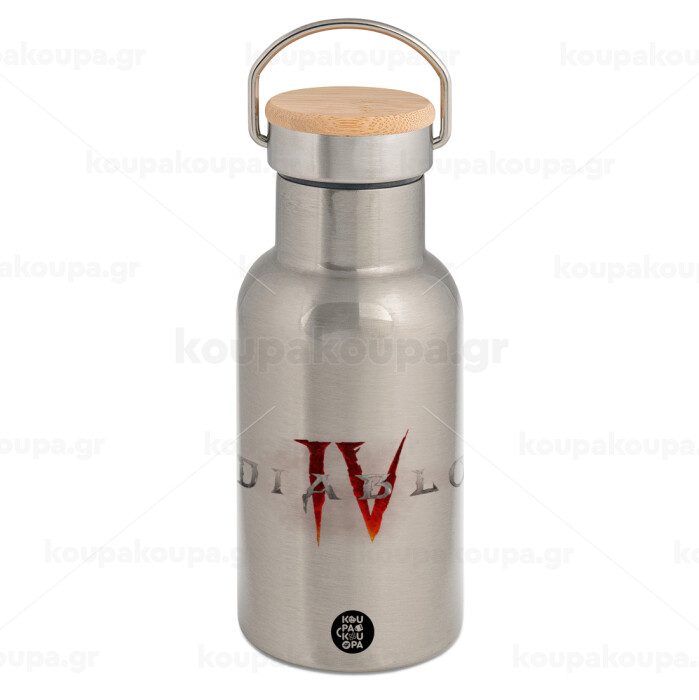 Diablo iv, Μεταλλικό παγούρι θερμός (Stainless steel) Ασημένιο με ξύλινο καπακι (bamboo), διπλού τοιχώματος, 350ml