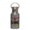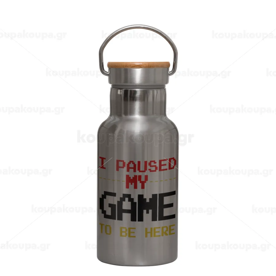 I paused my game to be here, Μεταλλικό παγούρι θερμός (Stainless steel) Ασημένιο με ξύλινο καπακι (bamboo), διπλού τοιχώματος, 350ml