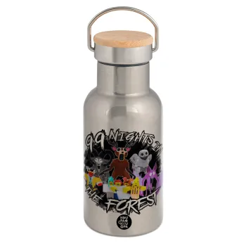 Roblox 99 nights in the forest, Μεταλλικό παγούρι θερμός (Stainless steel) Ασημένιο με ξύλινο καπακι (bamboo), διπλού τοιχώματος, 350ml
