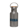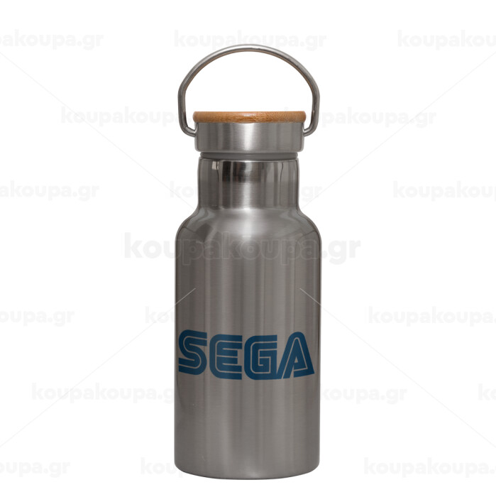 SEGA, Μεταλλικό παγούρι θερμός (Stainless steel) Ασημένιο με ξύλινο καπακι (bamboo), διπλού τοιχώματος, 350ml