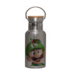 Super mario Luigi, Μεταλλικό παγούρι θερμός (Stainless steel) Ασημένιο με ξύλινο καπακι (bamboo), διπλού τοιχώματος, 350ml