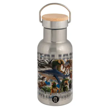 Italian Brainrot, Μεταλλικό παγούρι θερμός (Stainless steel) Ασημένιο με ξύλινο καπακι (bamboo), διπλού τοιχώματος, 350ml