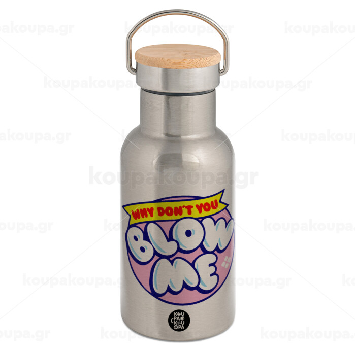 Why Don't You Blow Me Funny, Μεταλλικό παγούρι θερμός (Stainless steel) Ασημένιο με ξύλινο καπακι (bamboo), διπλού τοιχώματος, 350ml