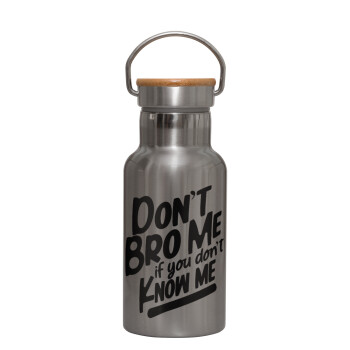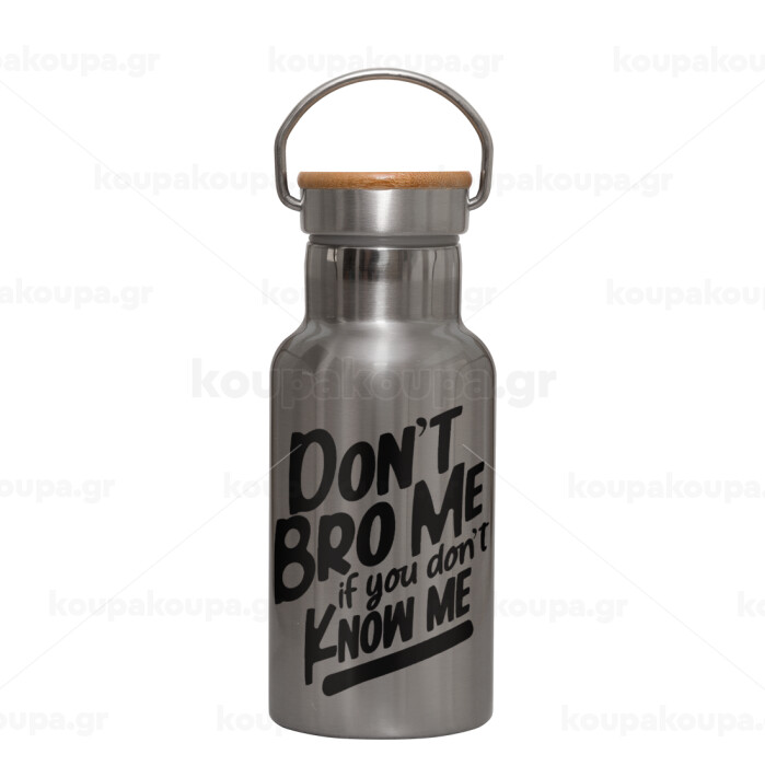 Dont't bro me, if you don't know me., Μεταλλικό παγούρι θερμός (Stainless steel) Ασημένιο με ξύλινο καπακι (bamboo), διπλού τοιχώματος, 350ml