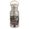 Splish splash your opinion is trash, Μεταλλικό παγούρι θερμός (Stainless steel) Ασημένιο με ξύλινο καπακι (bamboo), διπλού τοιχώματος, 350ml