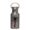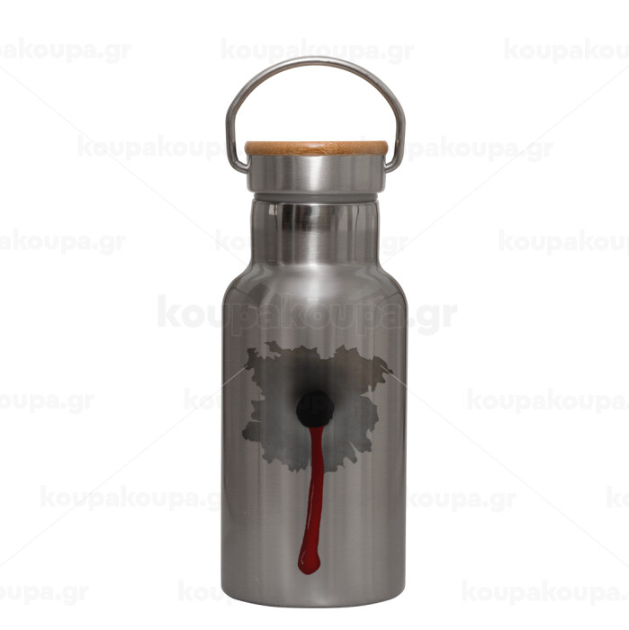 Bullet holes, Μεταλλικό παγούρι θερμός (Stainless steel) Ασημένιο με ξύλινο καπακι (bamboo), διπλού τοιχώματος, 350ml