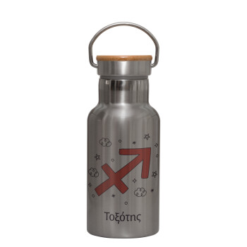 Ζώδια Τοξότης, Μεταλλικό παγούρι θερμός (Stainless steel) Ασημένιο με ξύλινο καπακι (bamboo), διπλού τοιχώματος, 350ml