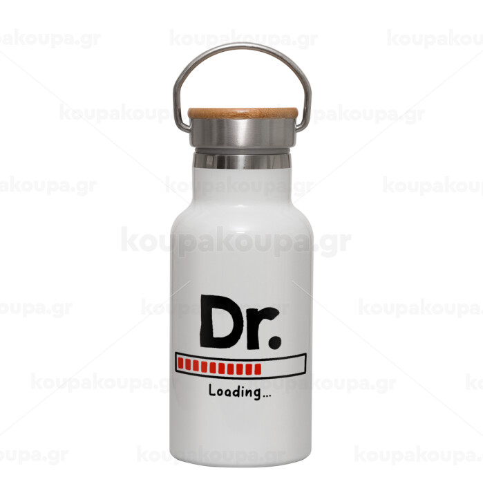 DR. Loading..., Μεταλλικό παγούρι θερμός (Stainless steel) Λευκό με ξύλινο καπακι (bamboo), διπλού τοιχώματος, 350ml