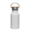 BLANK, Μεταλλικό παγούρι θερμός (Stainless steel) Λευκό με ξύλινο καπακι (bamboo), διπλού τοιχώματος, 350ml