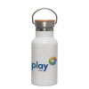 Play by ΟΠΑΠ, Μεταλλικό παγούρι θερμός (Stainless steel) Λευκό με ξύλινο καπακι (bamboo), διπλού τοιχώματος, 350ml