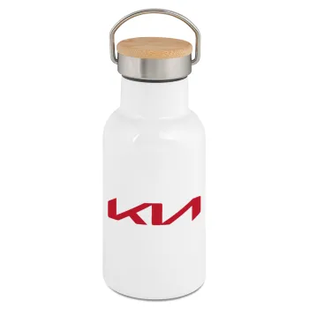 KIA, Μεταλλικό παγούρι θερμός (Stainless steel) Λευκό με ξύλινο καπακι (bamboo), διπλού τοιχώματος, 350ml