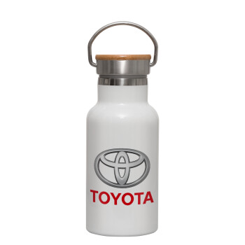 Toyota, Μεταλλικό παγούρι θερμός (Stainless steel) Λευκό με ξύλινο καπακι (bamboo), διπλού τοιχώματος, 350ml