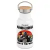 Mandalorian, Μεταλλικό παγούρι θερμός (Stainless steel) Λευκό με ξύλινο καπακι (bamboo), διπλού τοιχώματος, 350ml