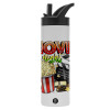 Movie night, Μεταλλικό παγούρι θερμός (Stainless steel) Λευκό με ξύλινο καπακι (bamboo), διπλού τοιχώματος, 350ml
