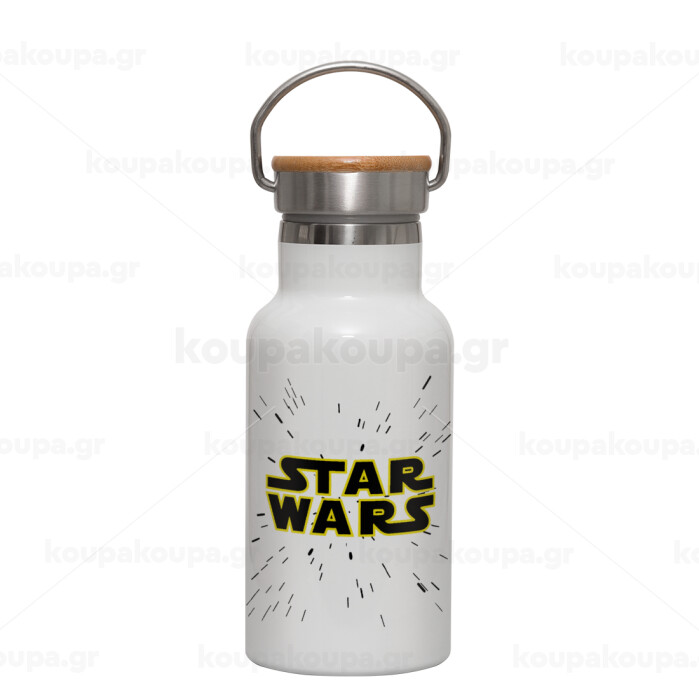 Star Wars, Μεταλλικό παγούρι θερμός (Stainless steel) Λευκό με ξύλινο καπακι (bamboo), διπλού τοιχώματος, 350ml