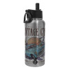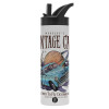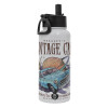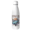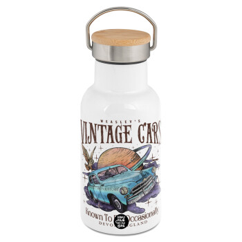 Wizard Flying Car, Μεταλλικό παγούρι θερμός (Stainless steel) Λευκό με ξύλινο καπακι (bamboo), διπλού τοιχώματος, 350ml