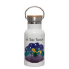 Ο μικρός πρίγκιπας, Μεταλλικό παγούρι θερμός (Stainless steel) Λευκό με ξύλινο καπακι (bamboo), διπλού τοιχώματος, 350ml