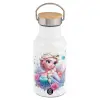 Elsa Princess, Μεταλλικό παγούρι θερμός (Stainless steel) Λευκό με ξύλινο καπακι (bamboo), διπλού τοιχώματος, 350ml
