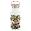 Garfield Fitness, Μεταλλικό παγούρι θερμός (Stainless steel) Λευκό με ξύλινο καπακι (bamboo), διπλού τοιχώματος, 350ml