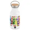 Inside Out It's Okay To Feel All The Feels , Μεταλλικό παγούρι θερμός (Stainless steel) Λευκό με ξύλινο καπακι (bamboo), διπλού τοιχώματος, 350ml