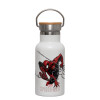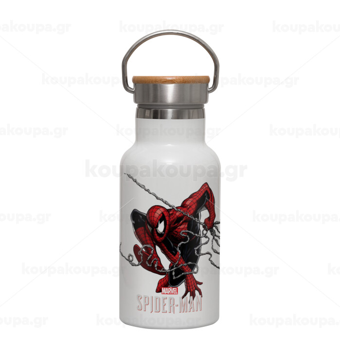 Spider-man, Μεταλλικό παγούρι θερμός (Stainless steel) Λευκό με ξύλινο καπακι (bamboo), διπλού τοιχώματος, 350ml