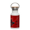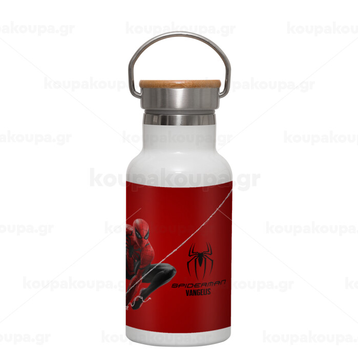 Spiderman, Μεταλλικό παγούρι θερμός (Stainless steel) Λευκό με ξύλινο καπακι (bamboo), διπλού τοιχώματος, 350ml
