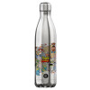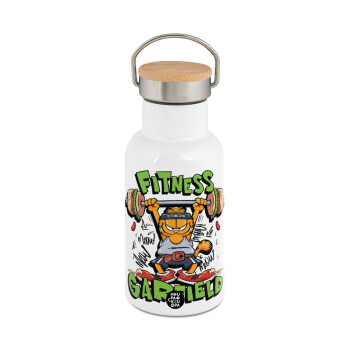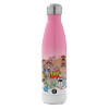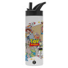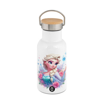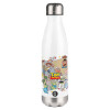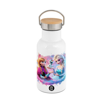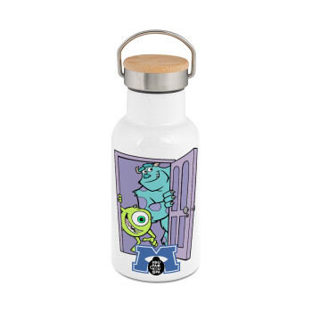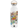toystory characters, Μεταλλικό παγούρι θερμός (Stainless steel) Λευκό με ξύλινο καπακι (bamboo), διπλού τοιχώματος, 350ml