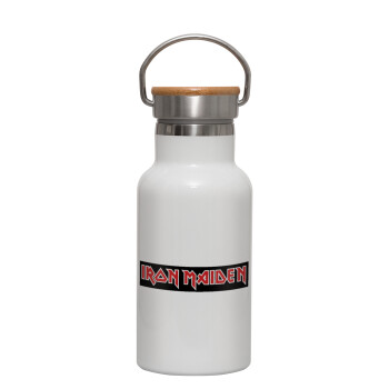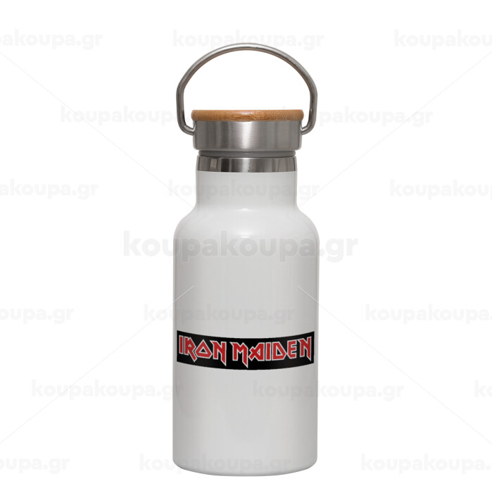 Iron maiden, Μεταλλικό παγούρι θερμός (Stainless steel) Λευκό με ξύλινο καπακι (bamboo), διπλού τοιχώματος, 350ml