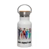 One Direction , Μεταλλικό παγούρι θερμός (Stainless steel) Λευκό με ξύλινο καπακι (bamboo), διπλού τοιχώματος, 350ml