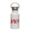 Slayer, Μεταλλικό παγούρι θερμός (Stainless steel) Λευκό με ξύλινο καπακι (bamboo), διπλού τοιχώματος, 350ml